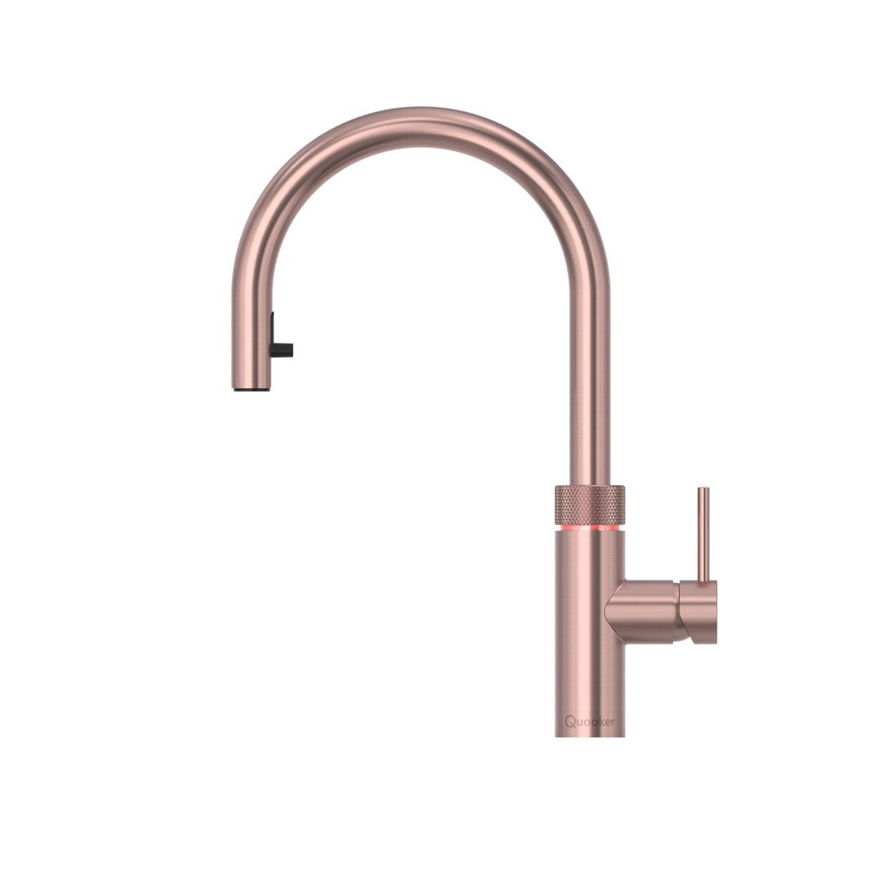 Vi har fundet Quooker Flex – Rose Copper – Uden Beholder fra Quooker hos Billigskabe.dk i kategorien Quooker. Quooker Flex i Rose Copper.Den nye overflade – Rose Copper – er inspireret af kobber, men også med et strejf af lyserød, som giver køkkenet en varm, tidløs glans, som passer godt til en let, skandinavisk farvepalet.Flex-hanen leverer varmt, koldt og kogen